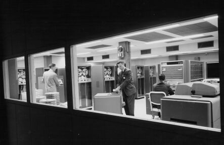 It was one of the most advanced systems commercially available in the world at that time. It had a central processing unit with a 32,768 word magnetic core memory, an 8,192 word magnetic drum memory, 20 magnetic tape drives, peripheral equipment to convert punch cards to magnetic tape and to print from magnetic tape, and EAM equipment to process punch cards centered around an IBM Type 407 Accounting Machine. It was a binary machine with a word length of 36 binary digits (equivalent to over 10 decimal digits).