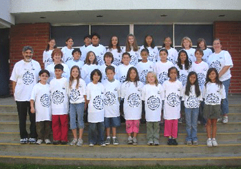 Picture Caption: MATH WIZARDS--Linwood Howe elementary school “Mathletes” pose with instructors Jason Frand (at left) and Karen Burkenheim (at right) before competing this week in the first round of the Mathematics Olympiad at the school. |