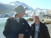 But even more astonishing than the worms was the ice itself. When we walked up to the glacier and touched it, a piece broken off. Kimber explained how the ice that we were touching had fallen as snow a thousand years ago high in the mountains (about 11 miles from where we were). The ice we were touching was not created like ice in a freezer; that is, a glacier is not water which has been frozen like one big ice cube. Glacial ice is formed by snow flakes piled on snow flakes piled on snow flakes over thousands of years creating enormous pressure which compacts the snow, forcing out all air, and leaving the ice in a crystal form. We could easily break off a piece of the glacier as it was made of small, beautiful ice crystals. These millions of billions of small crystals then careen down the mountain as a sheet of ice (at a snails pace of course) working their architectural magic carving valleys and water filled fjords. As this sheet of ice twists and turns, moves over harder or softer base rock, it appears as a river flowing, with breaks and cracks (called crevasses) that give it character and beauty. |